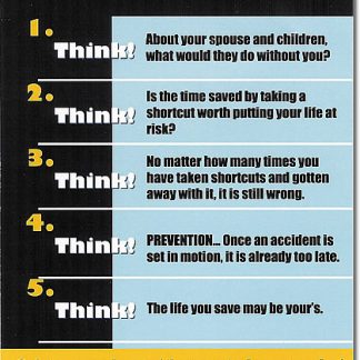 Put these THINK! branded mini-posters anywhere that people might need a reminder to make workplace safety the top priority.